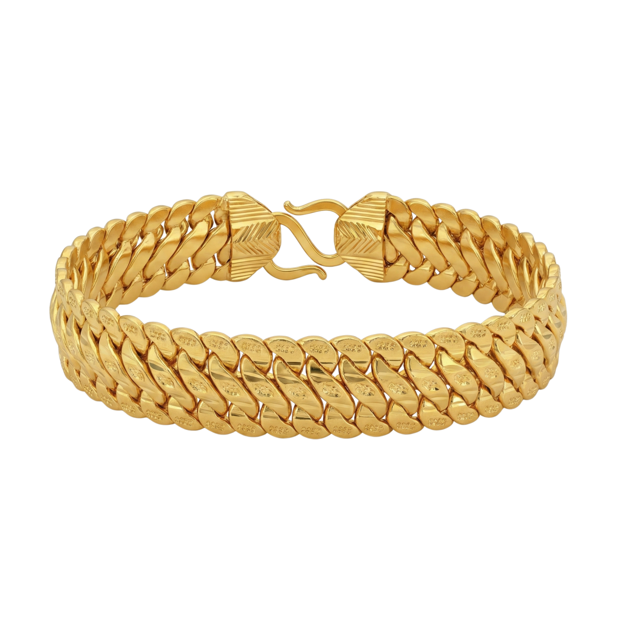 A bold gold bracelet designed with structured links and a strong, masculine finish.
