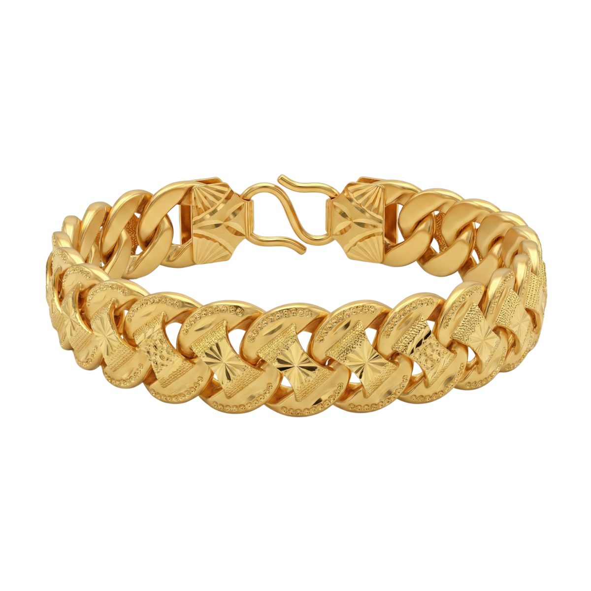 A bold gold bracelet designed with structured links and a strong, masculine finish.
