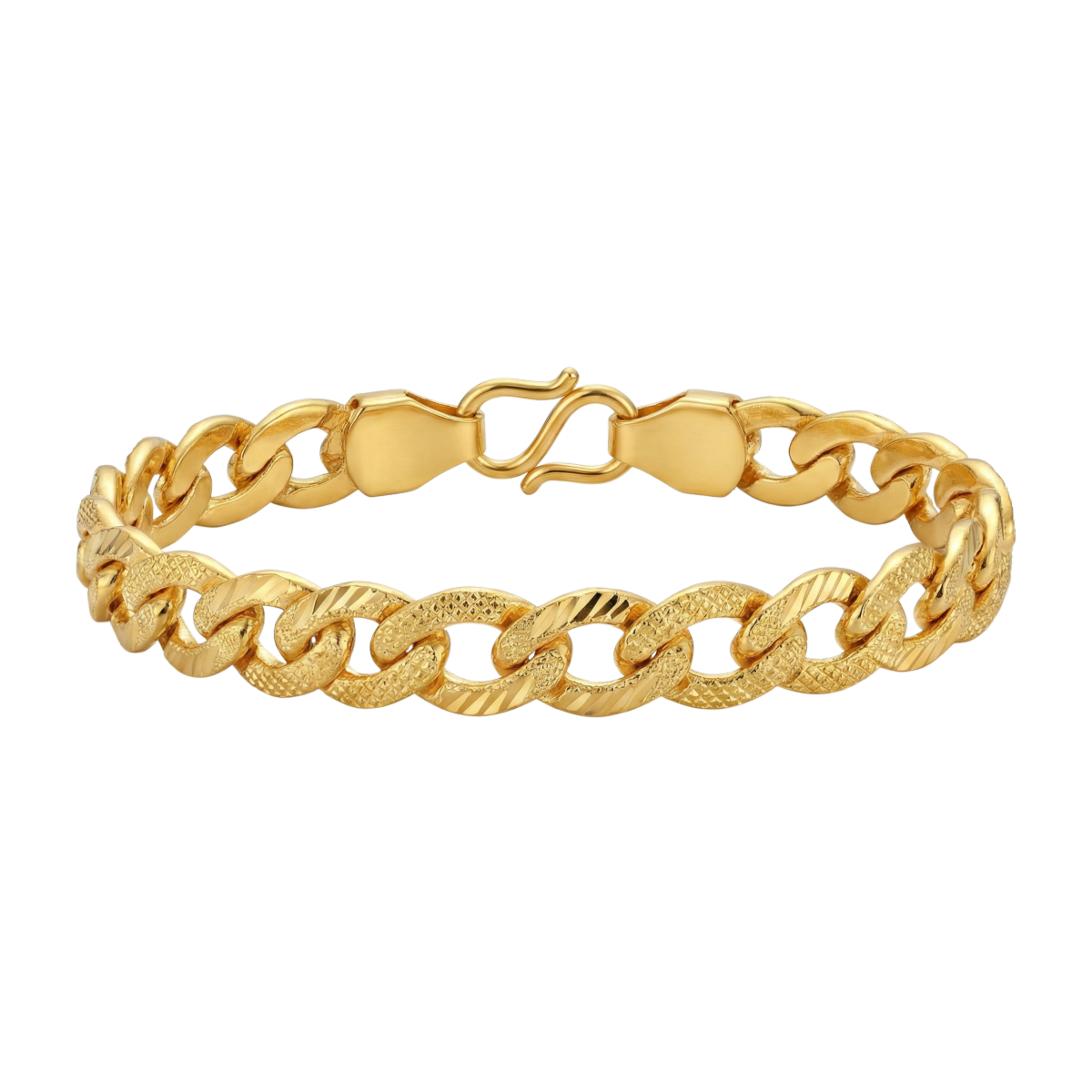 A bold gold bracelet designed with structured links and a strong, masculine finish.