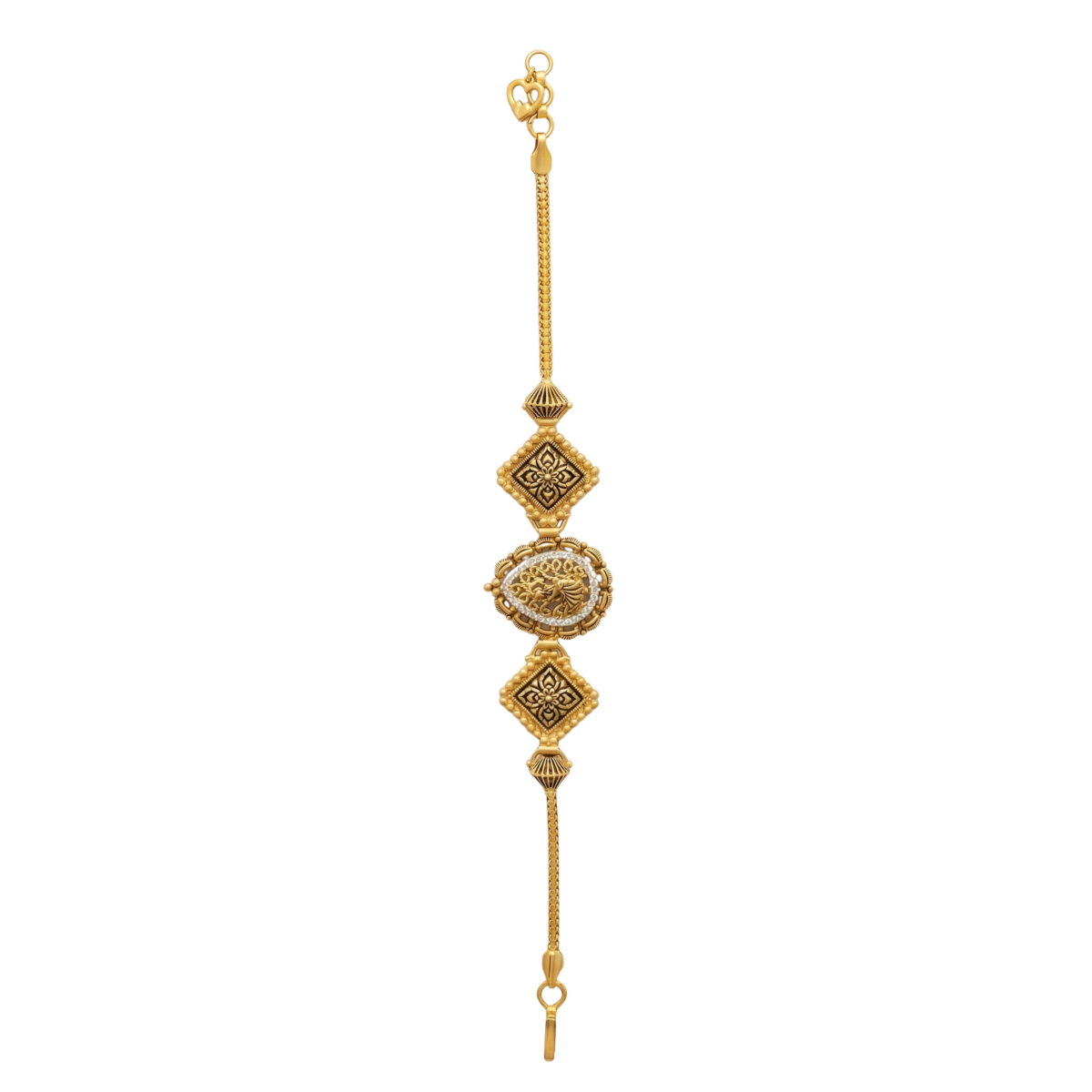 A bold gold bracelet designed with structured links and a strong, masculine finish.