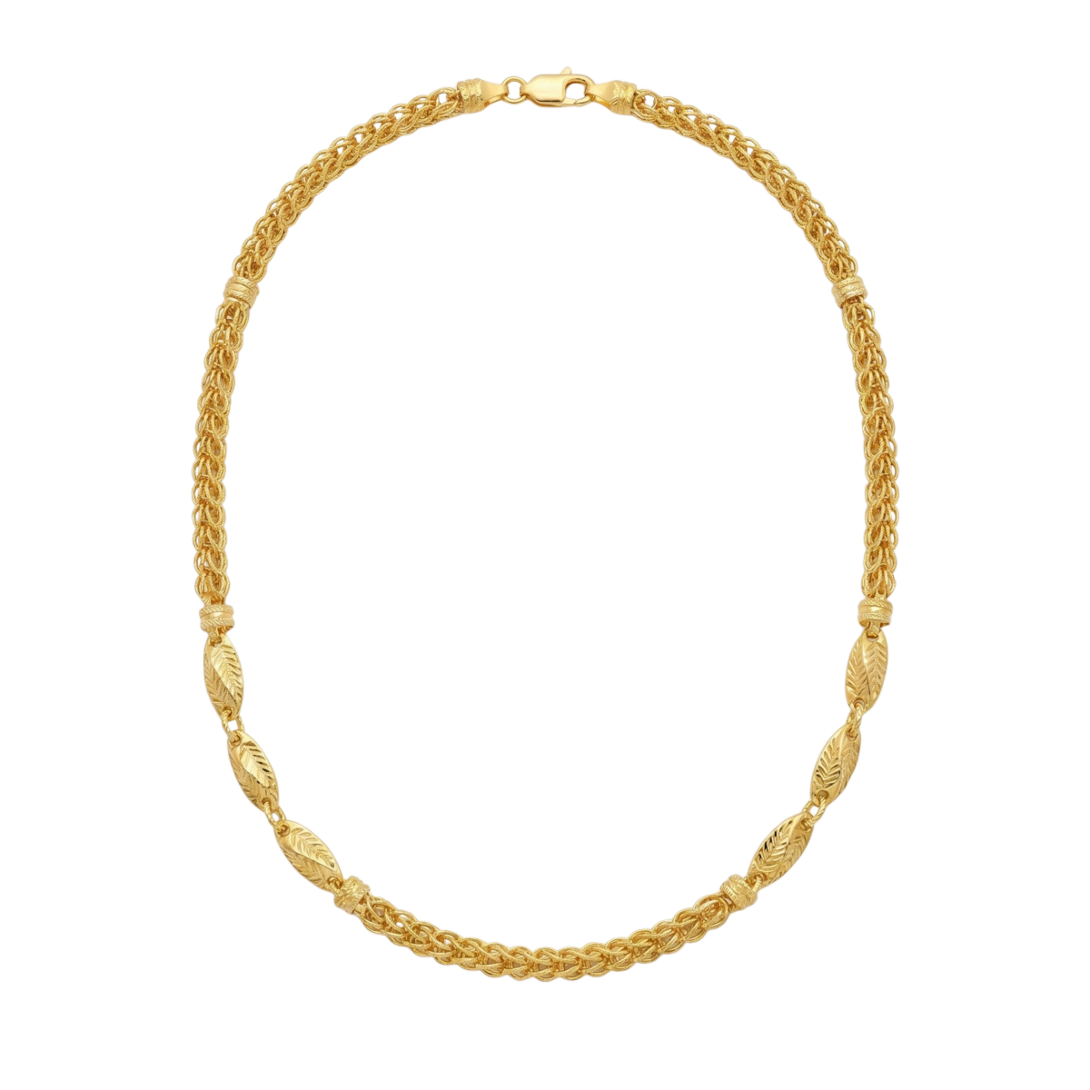 A delicately crafted gold chain designed with fine detailing and a graceful flow.