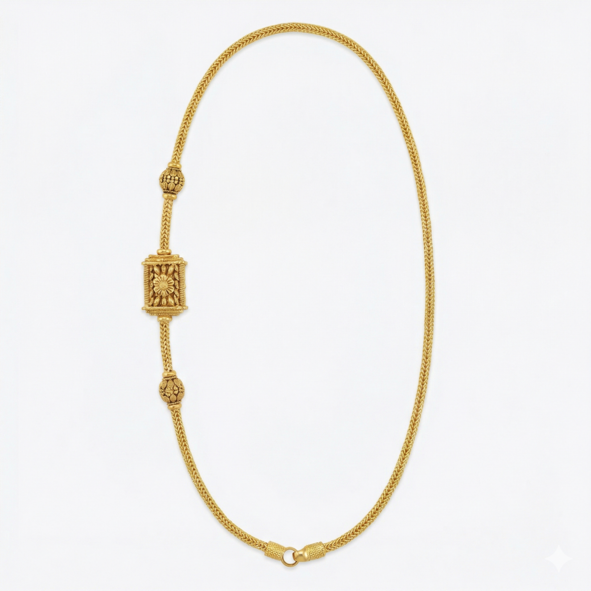 A finely crafted gold mangalyam chain designed to hold the sacred thaali with grace and strength.